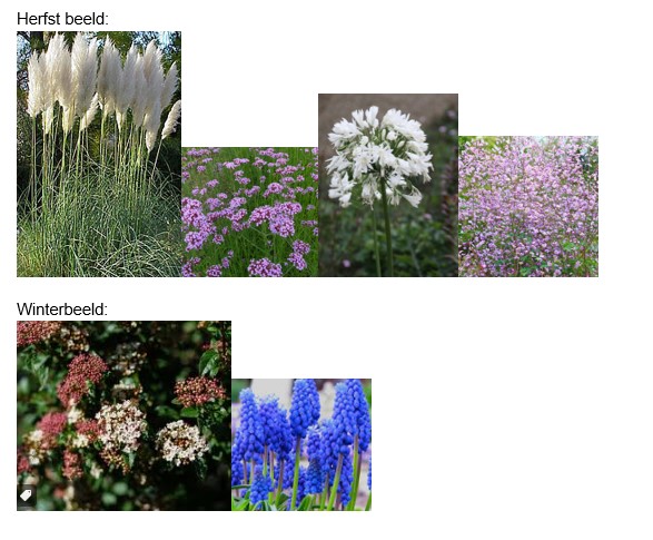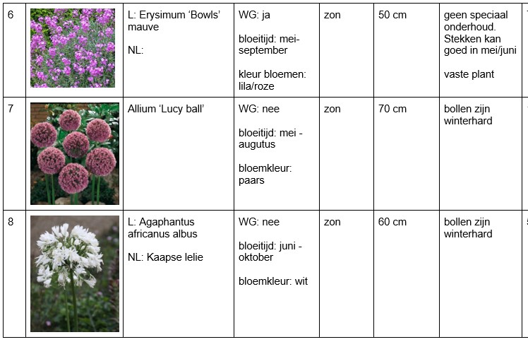 De bewoners waren heel blij met de indeling van hun tuin, maar hadden moeite met de beplanting. Ze wilden graag het hele jaar iets om naar te kijken in de tuin. Hun voorkeur ging uit naar roze, paarse en blauwe bloemen.