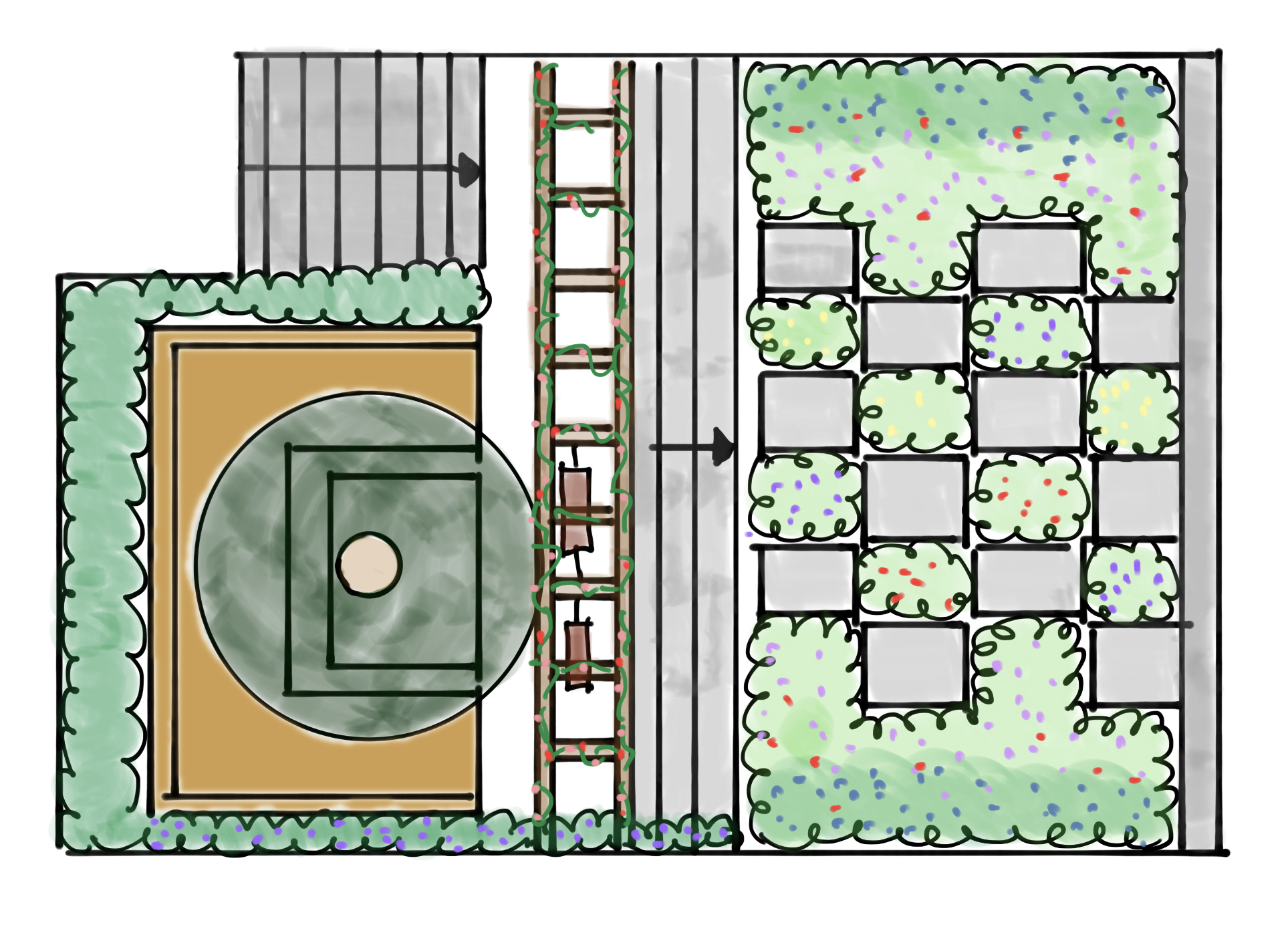 Een kleine tuin op het noorden in Amsterdam. De tuin heeft 60 cm hoogte verschil tussen het huis en de tuin. De bewoners houden van spelletjes en gezelligheid. Ze hebben een kleurrijk interieur. Ze wilden hun tuin graag maximaal benutten.